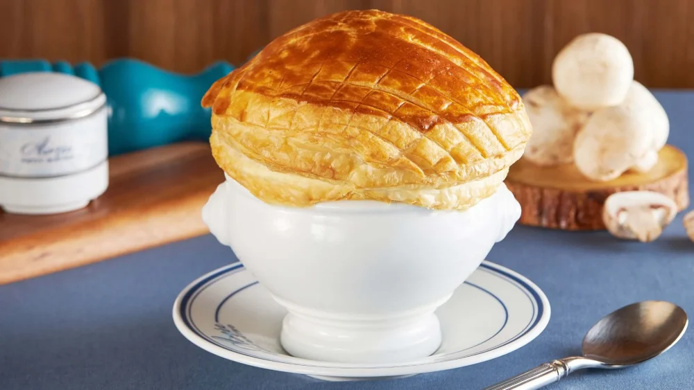 - Vol-au-vent: Light, airy puff pastry shells filled with savory sauces, often containing mushrooms or chicken.