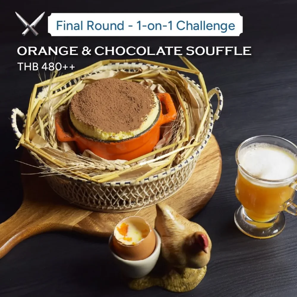 Mixed Egg Textures, Grand Marnier Essence & Fresh Orange Zest, Salted Eggs Custard, Dark Chocolate Heart and Fresh Citrus Juice.