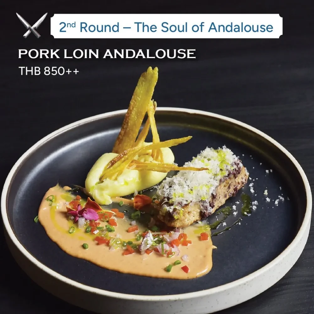 Mediterranean sunshine on a plate, tender pork in Andalouse sauce, blending sweetness, spice, and coastal flair.