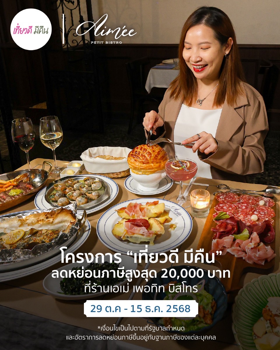 เมื่อซื้ออาหาร และเครื่องดื่ม (ที่ไม่ใช่แอลกอฮอล์) ที่เอเม่ เพอทิส บิสโทร สามารถนำใบเสร็จรับเงิน/ใบกำกับภาษีอิเล็กทรอนิกส์จากทางร้านฯ ไปลดหย่อนภาษีเงินได้บุคคลธรรมดาในปีภาษี 2568 สูงสุดได้ถึง 20,000 บาท*
