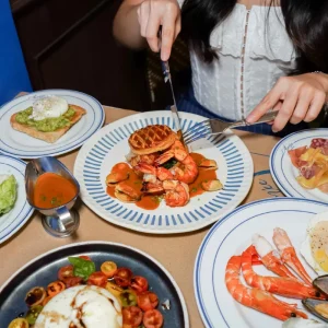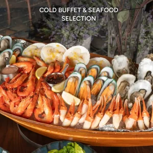 อิ่มอร่อยกับบรันช์สุดพรีเมียม ครบครันทั้งบุฟเฟ่ต์เย็นและซีฟู้ด ชีสนำเข้าหลากหลายชนิด มุมขนมอบและอาหารเช้า บุฟเฟ่ต์ของหวาน พร้อมเครื่องดื่มกาแฟ ชา และน้ำผลไม้สด รวมถึงเมนูจานหลักให้เลือก 1 จาน